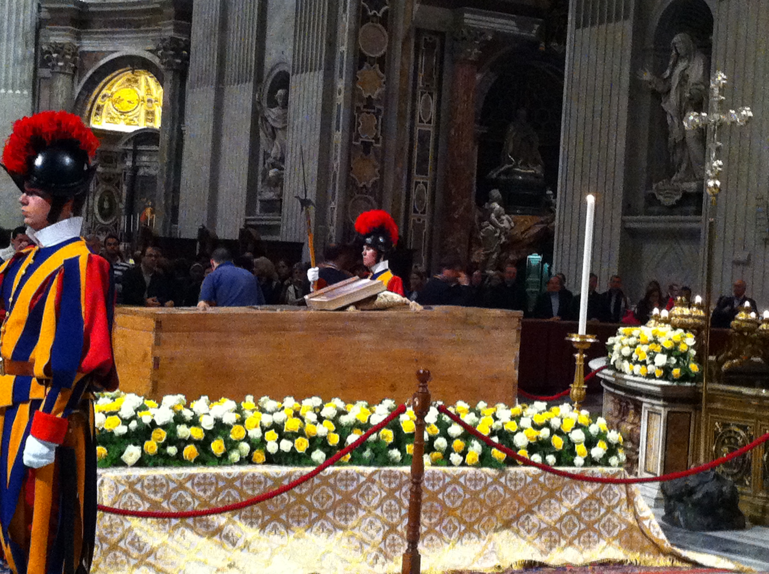 Mszę koncelebrowal z papieżem kardynałowie oraz jeden tylko arcybiskup – Mieczysław Mokrzycki ze Lwowa. Uczyniono dla niego wyjątek jako dla byłego sekretarza polskiego papieża. Ogromny ścisk panowal w okolicach Zamku Świętego Anioła w Rzymie, spod którego wielki tłum pielgrzymów próbuje przedostać się w kierunku Placu świętego Piotra. Blokady dróg ewakuacyjnych utrudnialy niesienie pomocy ludziom, którzy mdleli.