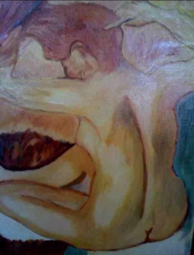 Woman After Shower – Combing Hair (Copy)” is an intimate oil painting capturing a quiet, everyday ritual. A woman, fresh from the shower, pauses to comb her hair, wrapped in warmth and soft light. The scene focuses on mood rather than detail, using gentle brushstrokes and subtle contrasts of light and shadow to suggest steam in the air and the lingering calm of water on the skin. This copy of the original work preserves its tender, introspective atmosphere, celebrating a private moment of self-care and stillness.