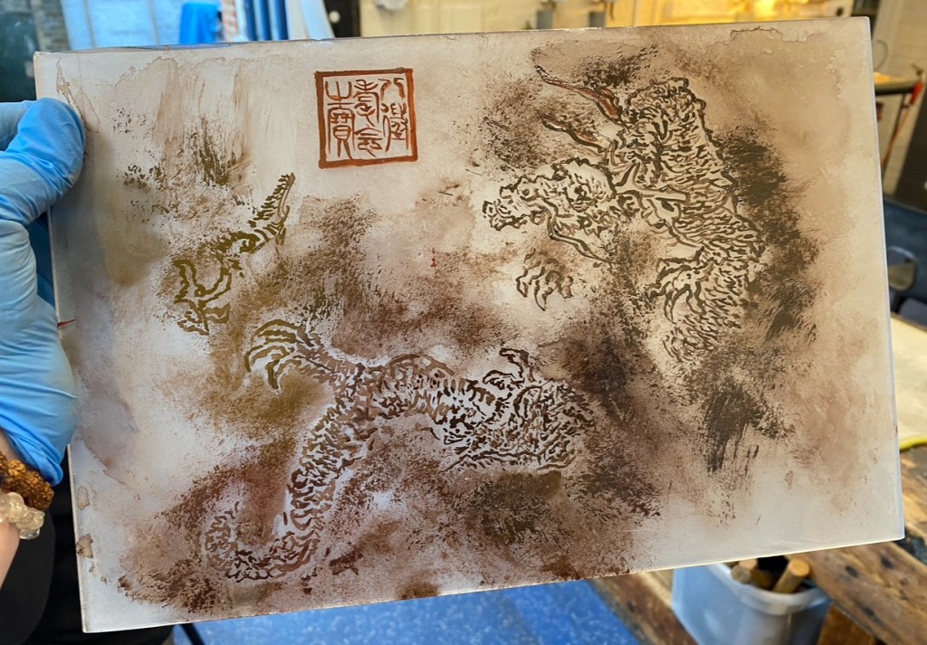 In Chinese culture, dragons hold a special significance as symbols of power, strength, and good fortune. In Nine Dragons, the depicted dragons are associated with the nine sons of the Dragon King, each representing a different aspect of the dragon’s mythical powers. The number nine itself is considered auspicious in Chinese astrology and folk beliefs, further adding to the mystical allure of the painting.