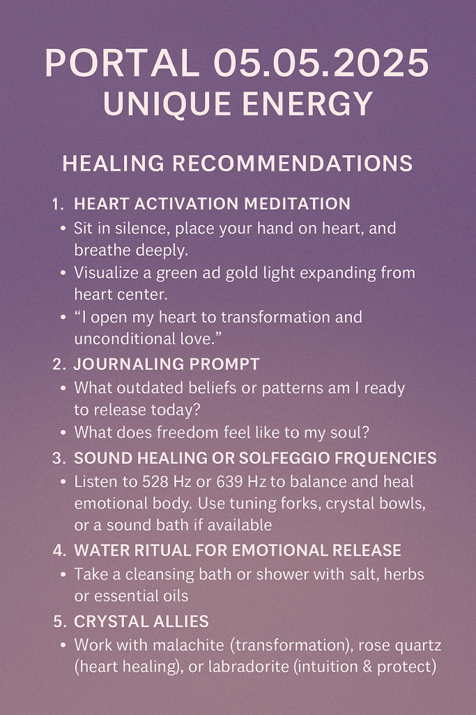 Today marks a powerful energetic gateway — the 5/5 portal, aligning the vibration of change, freedom, and soul evolution. In numerology, 5 represents dynamic transformation, adventure, and personal liberation. When doubled, its influence magnifies — making this day a cosmic catalyst for healing, letting go, and realignment with your higher path.