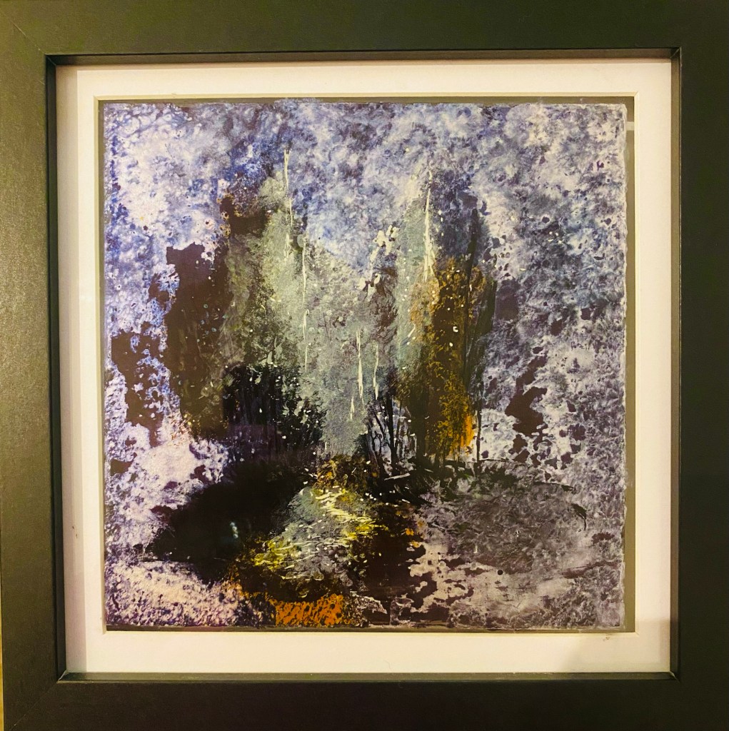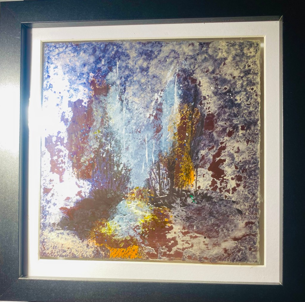 In this work, darkness is not empty; it is charged, breathing, and quietly watchful. Deep violets, indigos, and almost-black forms gather at the base like dense thoughts or heavy memories. They suggest the inner landscape of someone who has walked far into their own convictions—strong, determined, but also closed, rigid, and perhaps unable to see what lies beyond their own certainty. This is the psychological state of Saul before his encounter: powerful, focused, but locked inside a single way of seeing the world.
