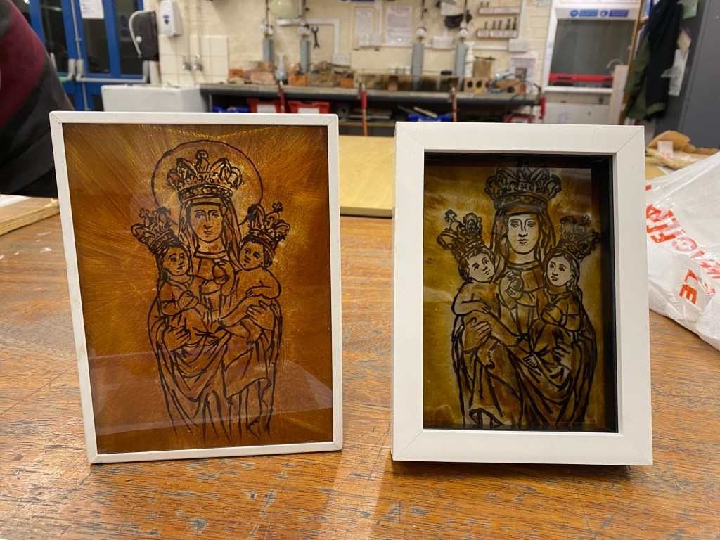 My creations include stained glass, painted glass, and mixed-media works, each infused with intention and symbolism.